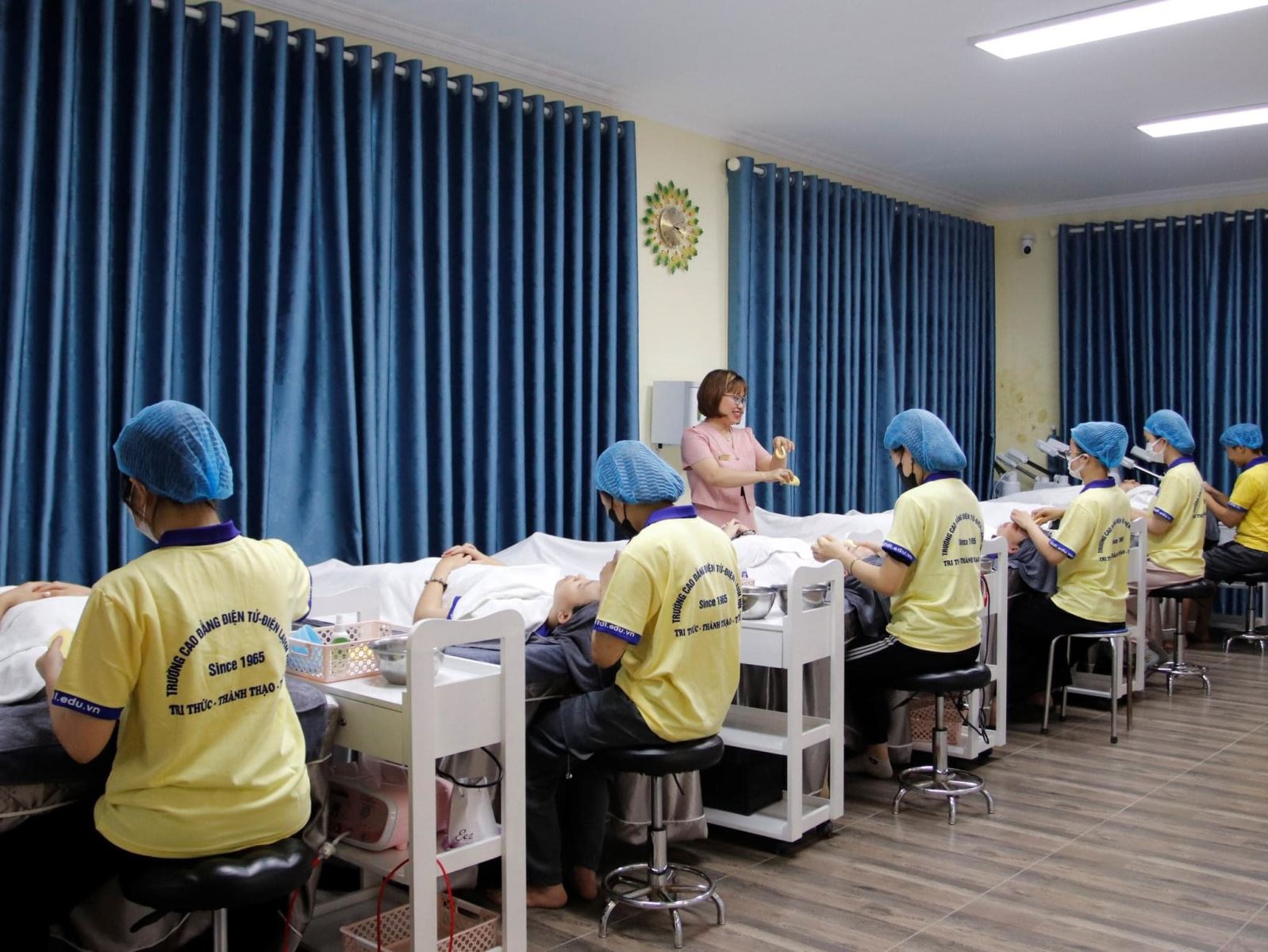 - Làm giáo viên hoặc mở trung tâm đào tạo học viên ngành chăm sóc sắc đẹp Các đơn vị thẩm mỹ, cơ sở làm đẹp hợp tác đào tạo với trường